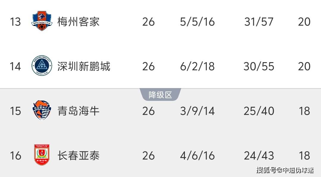 竞赛了结后正在这三场,生了宏大转变保级局面发。场保级大战的笑成梅州客家依靠着这,了降级区获胜离开,城同积20分与深圳新鹏,上风升至第13位并依靠互相战绩的。春亚泰同积18分青岛海牛则与长,入降级区再度跌,第二的身分排正在倒数。
