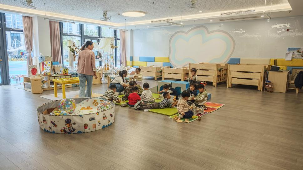 第三实习幼儿园云熙园区客岁9月开园的上虞区,配套幼儿园是一所幼区。教导一体化试点举动上虞托育,设3个托班这里目前开,0位幼伙伴招收了6。