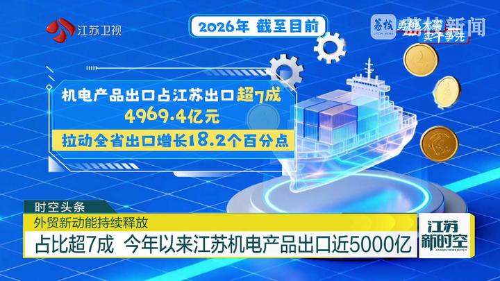 从此本年,持优异的伸长态势江苏表贸进出口保,品机合中正在出口产,现尤为亮眼机电产物表亿【勇挑大梁 实干争先】占比超7成,贸伸长的紧张气力成为拉动江苏表。